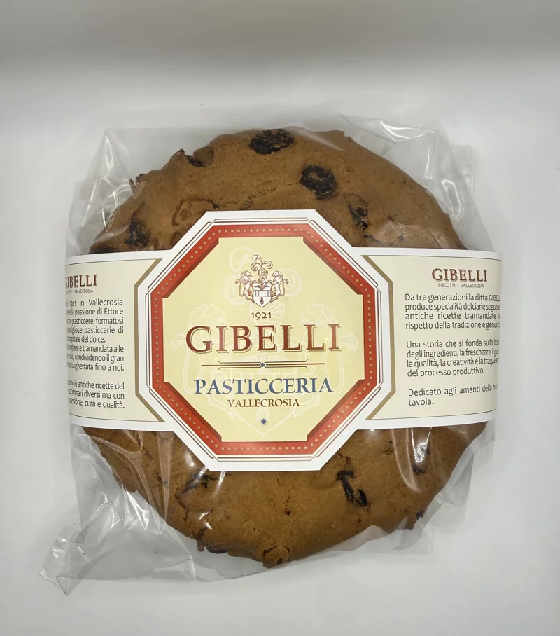 INGREDIENTI : FARINA di FRUMENTO, Uvetta, Zucchero , Canditi (Scorza d'arancia, sciroppo do glucosio – fruttosio, zucchero) , BURRO, UOVA, LATTE, Polvere lievitante, Sale, Miele, Semi di anice, Aroma Vaniglia, Acqua fior d'arancio di Vallebona.